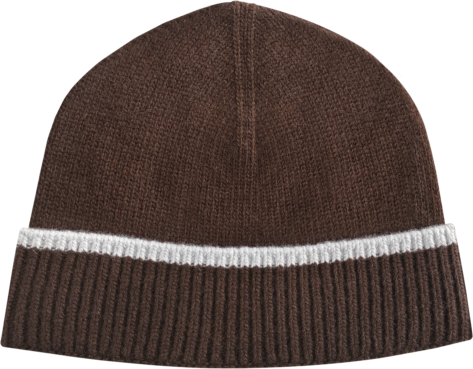 Fully-fashioned knit construction. Premium mid-weight merino lambswool. Jersey stitch crown, rib stitch cuff, contrast stripe at edge. No logos. Made in Korea.