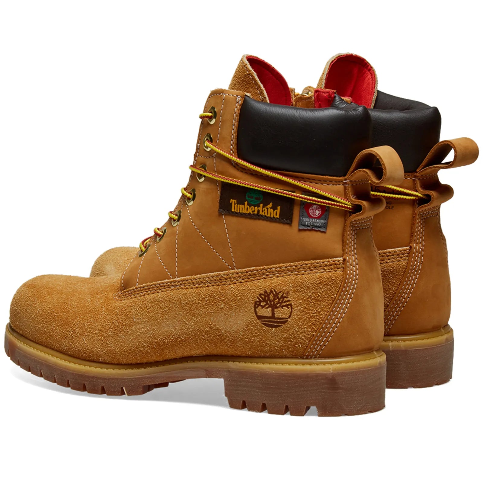 A New York icon reimagined by the city-based Staple, Timberland 6” wheat boot has been flipped inside out and given signature Staple touches. With the nubuck reversed to reveal a nappy suede, the uppers feature a side zip closure for easy on-and-off, woven patches that usually appear to the interior, and a subtle print that denotes the three dates of previous collaborations – ’07, ’15 and ’19. Completing the look, Timberland branding is joined by Staple’s perching pigeon logo, with the studio’s signature pink appearing across the interior lining.